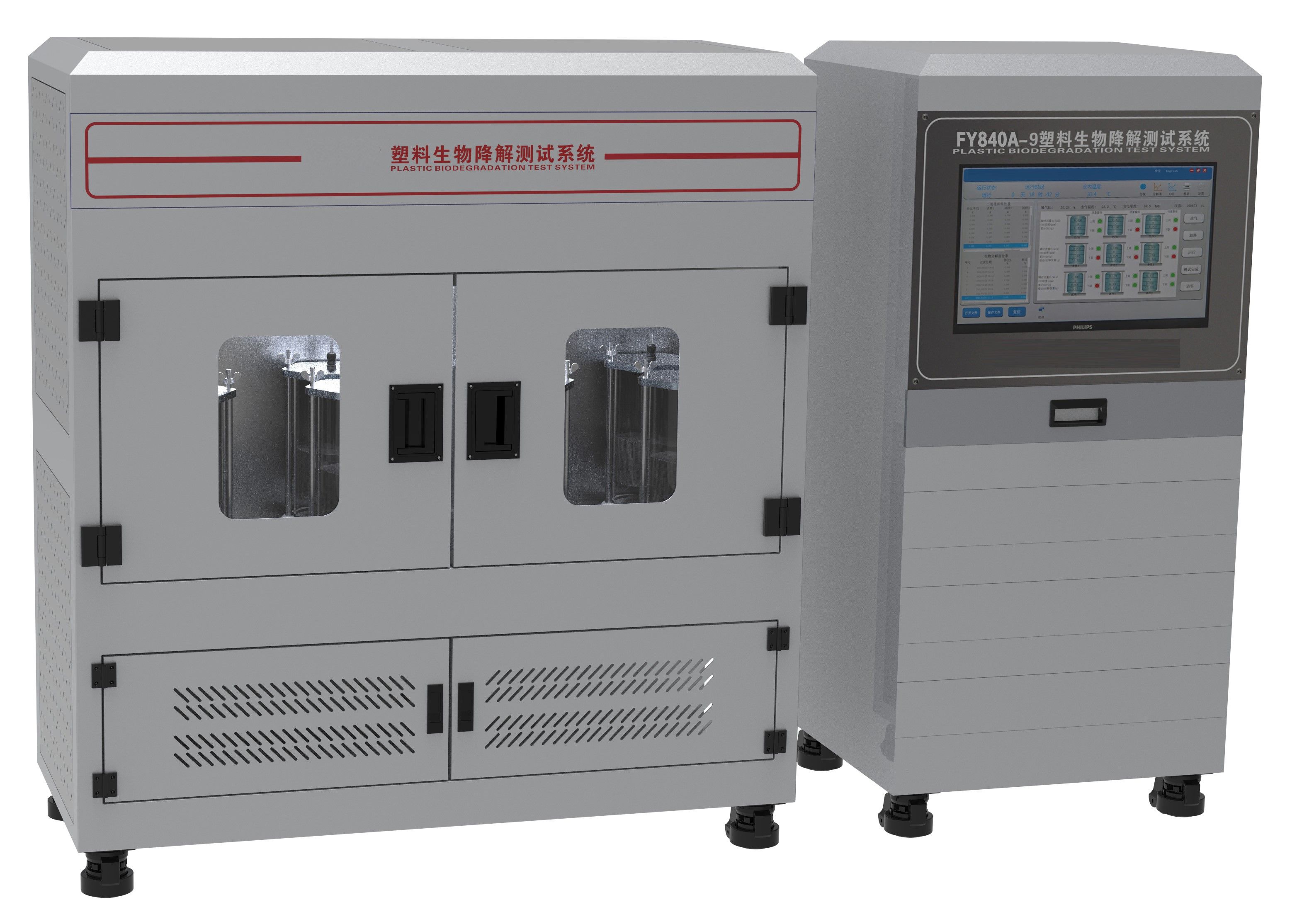 在試驗材料的需氧生物分解過程中,二氧化碳、水、礦化無機鹽及新的生物質(zhì)都是最終生物分解的產(chǎn)物。在試驗中連續(xù)監(jiān)測、定期測量試驗容器和空白容器產(chǎn)生的二氧化碳,累計產(chǎn)生的二氧化碳量。試驗材料在試驗中實際產(chǎn)生的二氧化碳量與該材料可以產(chǎn)生的二氧化碳的理論值之比為生物分解百分率。