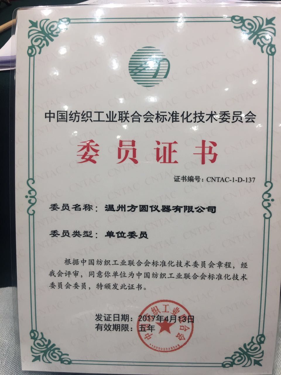 祝賀溫州方圓儀器有限公司成為中紡聯(lián)標(biāo)準(zhǔn)化技術(shù)委員會委員單位