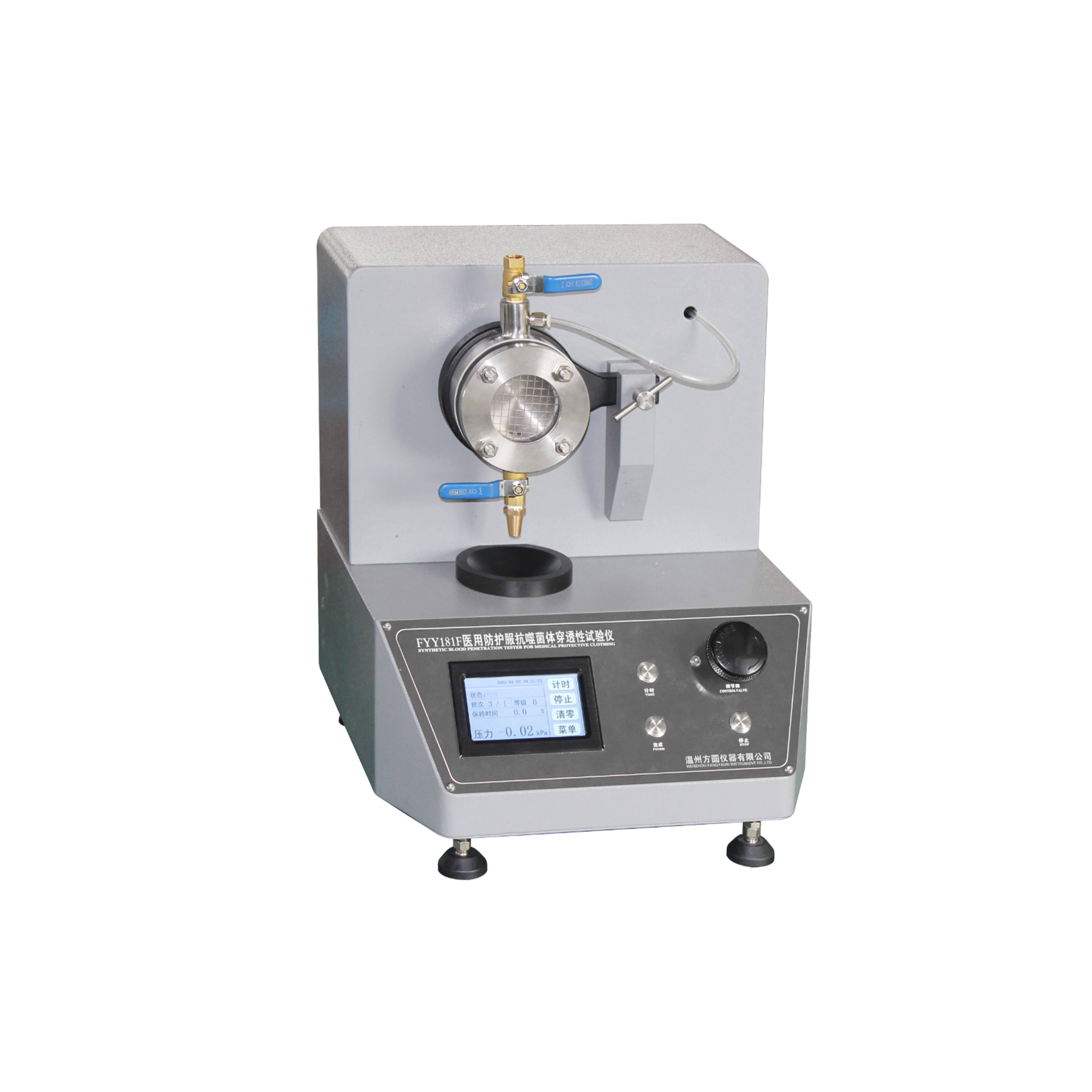 FYY181-Ⅳ醫(yī)用防護(hù)服合成血液穿透試驗(yàn)儀 ASTM-F903、GB19082-2009 附錄A、ISO16603-2014,YY/T0700-2008等標(biāo)準(zhǔn)。